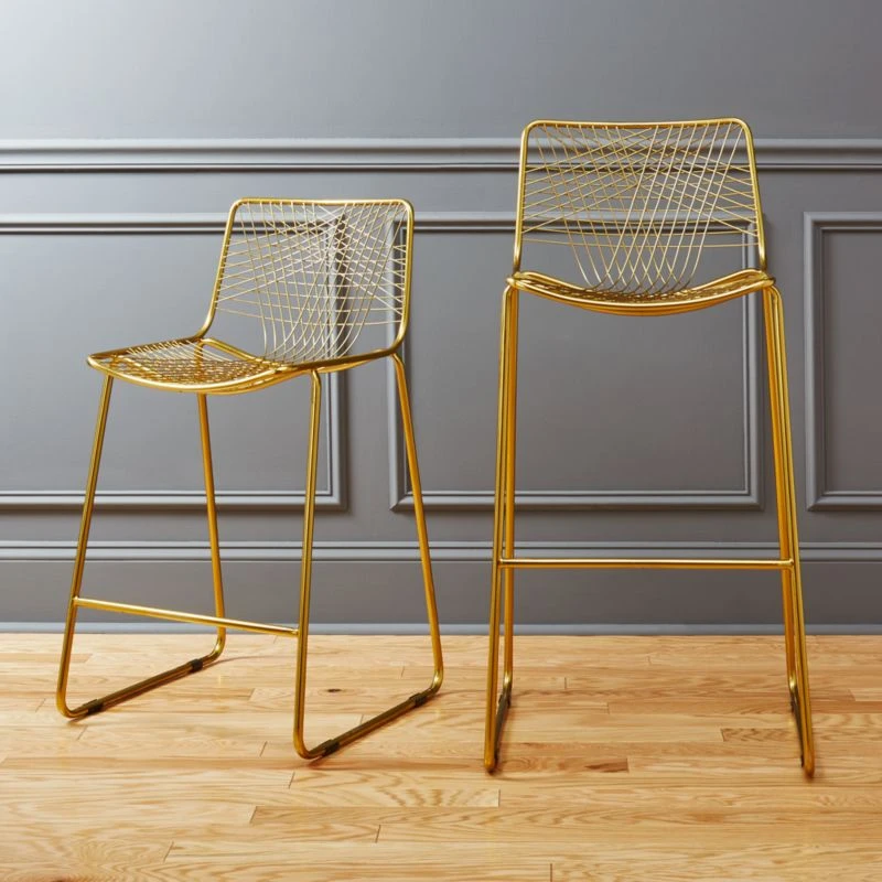 Warm brass lacquers a handmade iron frame with woven wire back. Expertly welded into a graphic linear pattern, thoughtful design details stun from any angle. Modern metallic plays beautifully against white and natural wood surfaces.
