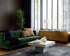 Designed by Caleb Zipperer, textured velvet dining chair in a warm mocha tone features classic button tufting–an unexpected detail in an otherwise modern design. Dining chair rests on faux rosewood veneer legs, giving the design a Brazilian feel. CB2 exclusive.