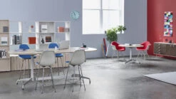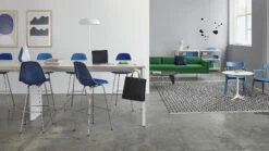 Thanks to advances in safe fibreglass composition, the Eamesesā distinctive single-shell form is safely produced by means of a less volatile, monomer-free ādry bindā process. A 4-leg base design based on the original 4-leg chair base makes it an ideal seating option at bar- or counter-height surfaces.