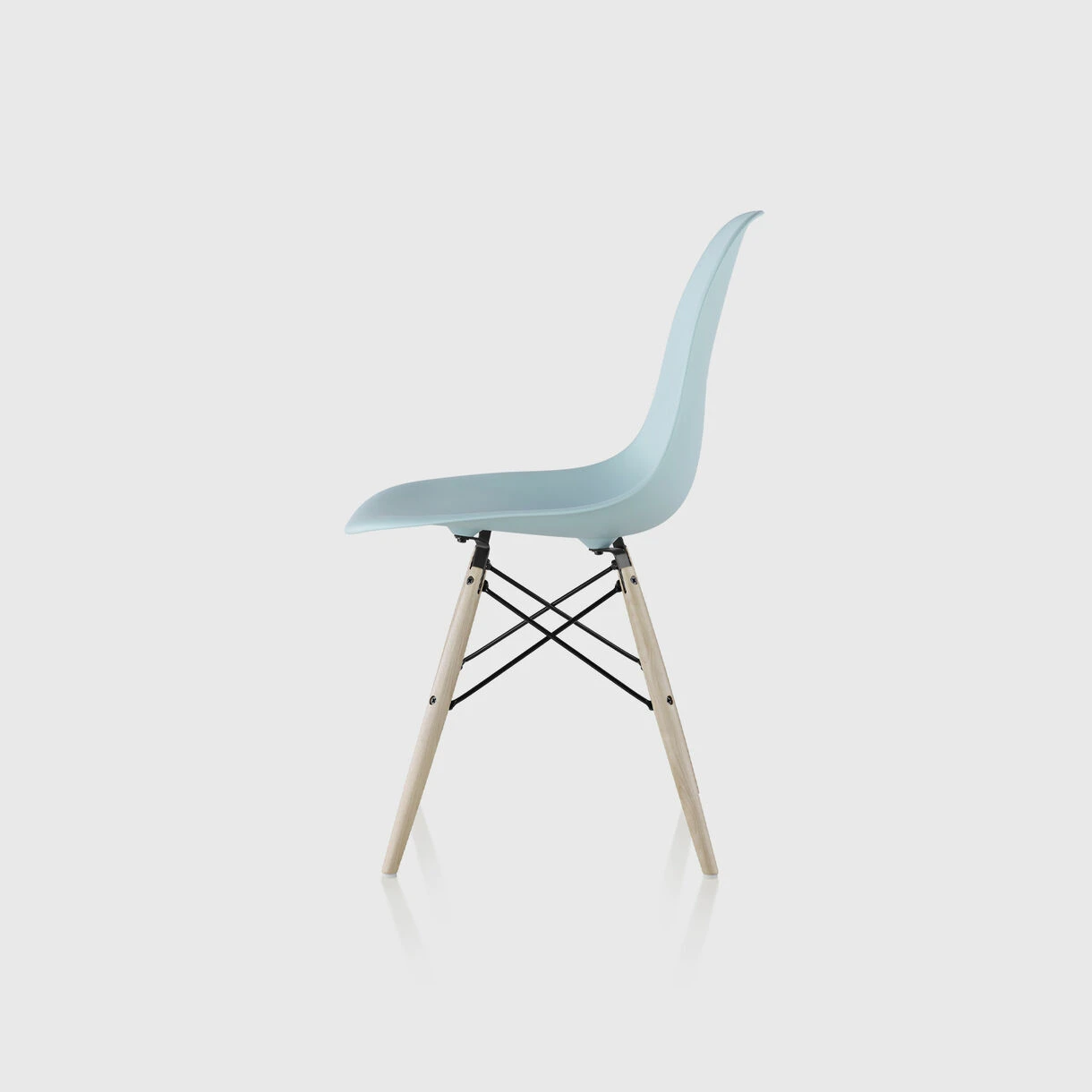 Charles and Ray Eames realised their first successful, single-shell form in 1950 with the Moulded Fibreglass Chairs. However, when the environmental risks associated with fibreglass production became more widely understood, the decision was made to discontinue fibreglass shell production until a more suitable material could be found. In 2001, Herman Miller reintroduced the Moulded Plastic Chair in polypropylene. In addition to being 100% recyclable, the polypropylene shell chair’s subtle matt texture offers a soft tactility as well as notable durability.