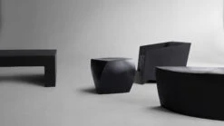 A group of three cubes, a bench, an easy chair, a coffee table/sitting unit, and a sofa, in silver/grey. Beautiful and functional, this furniture creates a stunning group indoors and outdoors.