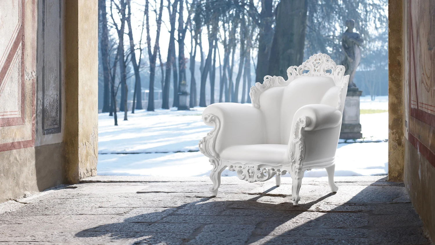 But now some truly revolutionary news, as a paradox comes true: the “Proust armchair” has now been transformed into an industrial rotational-moulded piece. Ladies and gentlemen, we bring you “Magis Proust”. This gem of technology and production brings new energy in its colours and atmospheres, making it a truly timeless object.” Alessandro Mendini