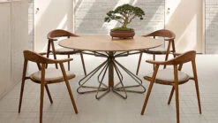 True to BassamFellows’ luxurious but authentic vision, each chair is unique and finishes never mask the natural beauty of the wood. Hence, the solid wood patinas beautifully with age (joints reinforced by steel pins ensure strength and durability) and each chair will last generations – a true 21st century heirloom.