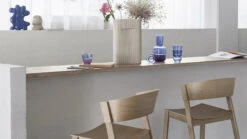 The design is lightweight and features a tall, enveloping back for extensive comfort that allows one to be seated in its seat for hours on end, be it for a dinner, a drink or even working at a counter desk.