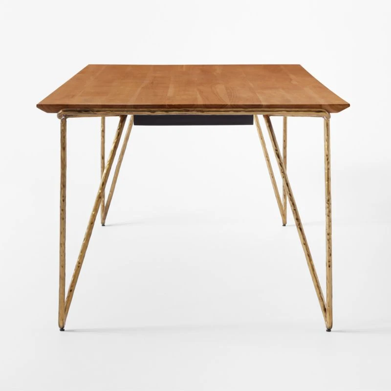 - Hammered steel frame with an antique brass finish