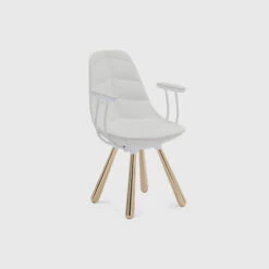 Each of these regal dining chairs by Jaime Hayon has its own finish and personality, referencing a rich episode in British history with detailed leather stitching featuring a pattern that has been in use since the 1500s.
