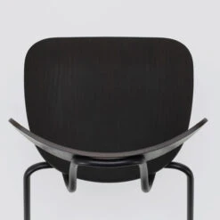 The base of Moca is constructed with two arcs of steel tubing – one forming the front legs and backrest support, the other constituting the back legs. Two veneered plywood shells are mounted on the base elements to create a comfortable, anatomically shaped seat and backrest. The clever design of the stacking protector attached between the seat and backrest provides optimal protection for the veneer surface.