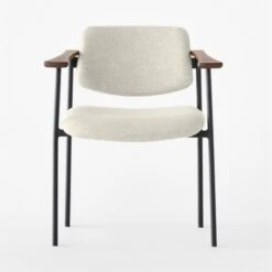 Versatile seat works in the office, the living room or at any modern table. Italian-made of matte black steel and ash wood, chair layers an air of sophistication in a warm, beige wool. Learn more about Omar De Biaggio on our blog. CB2 exclusive.